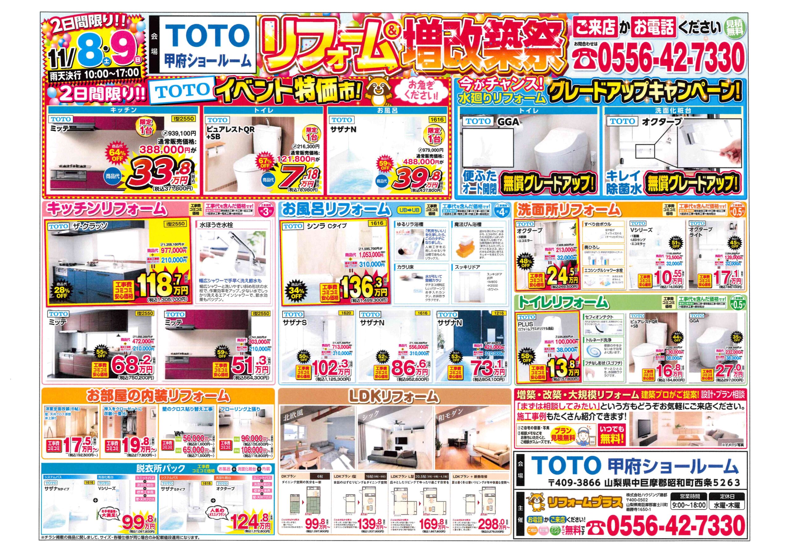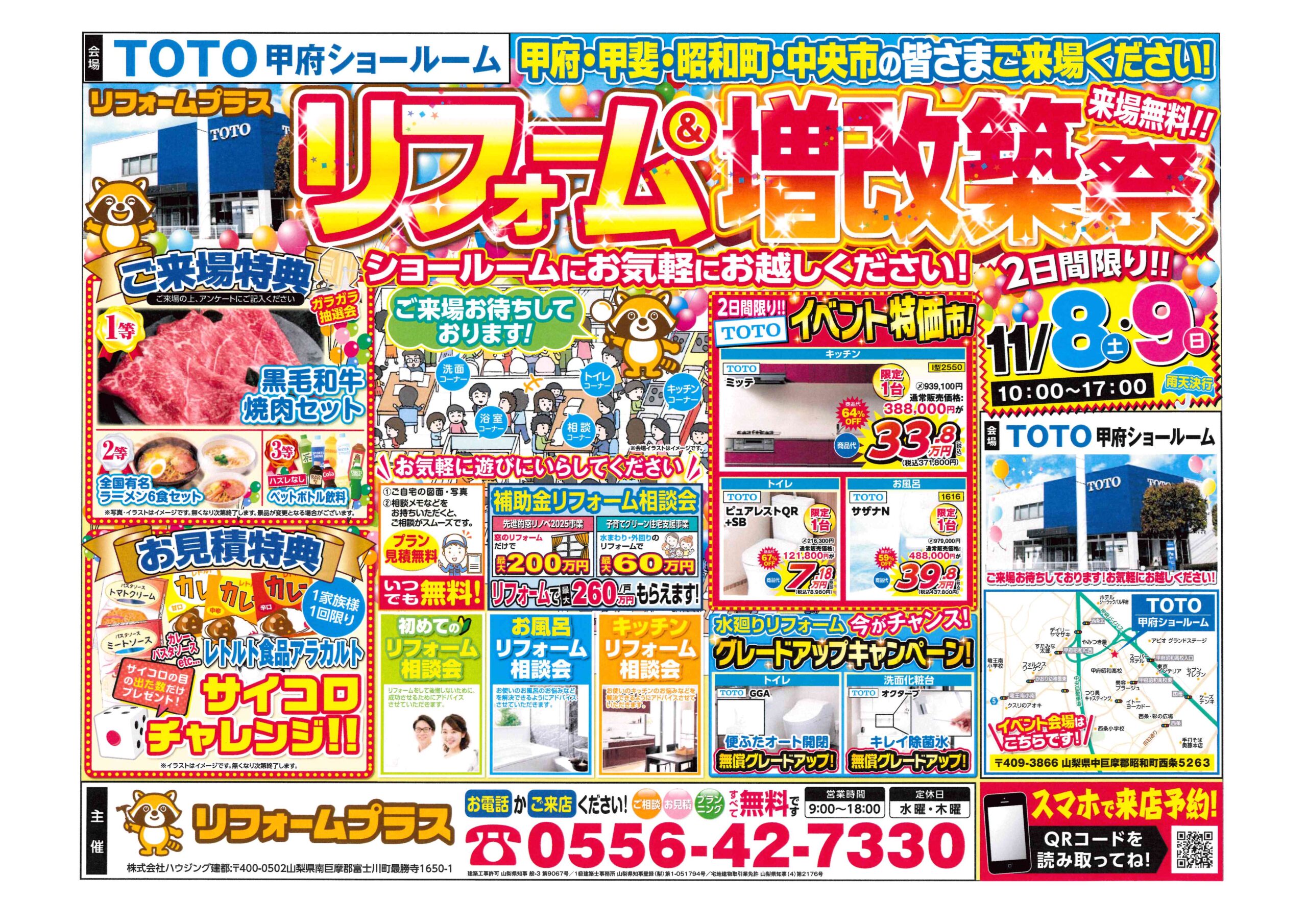 11月8日(土)・9日(日)の2日間!TOTOショールームにてリフォーム&増改築祭開催致します!
