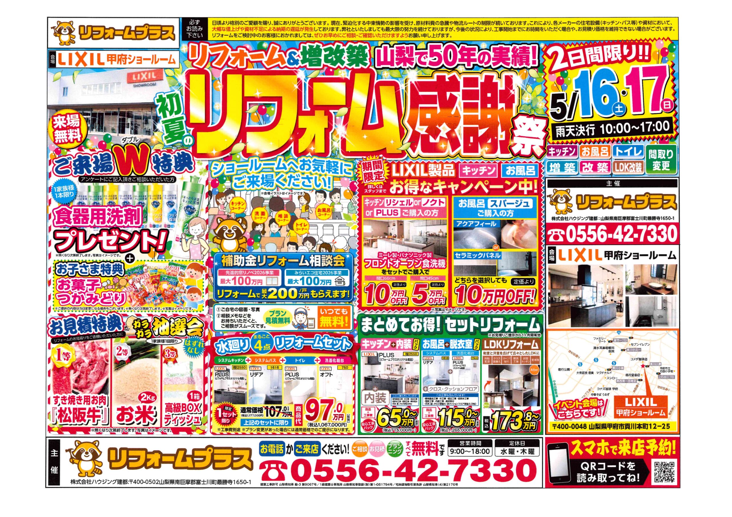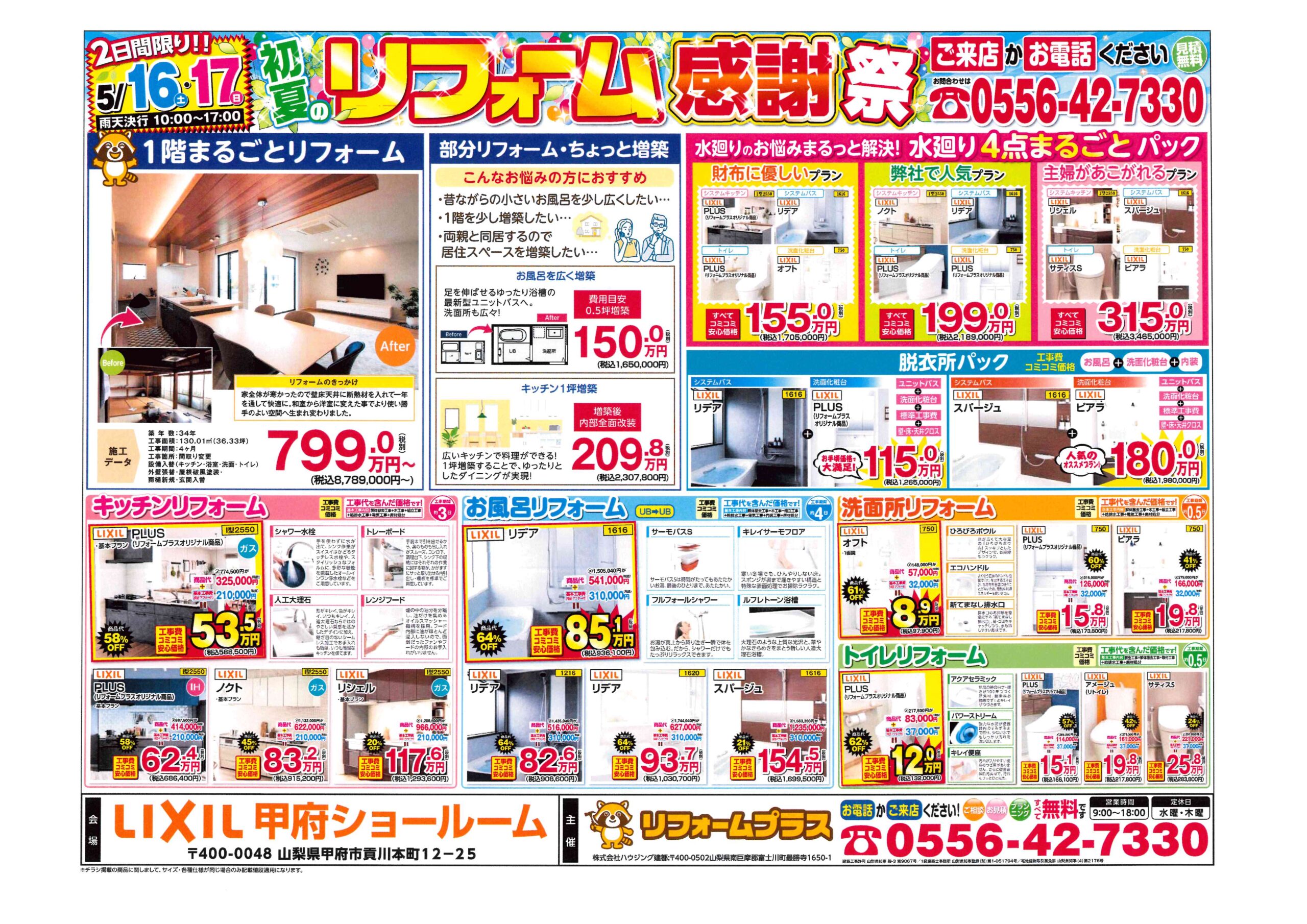 5月16日(土)・17日(日) 初夏の『リフォーム感謝祭』開催致します♬